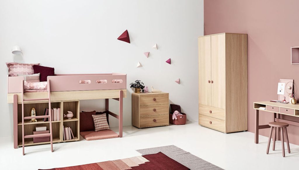 Die skandinavische Marke FLEXA bietet moderne und modulare Jugendbetten in gedeckten Farben wie Berry, Kiwi oder Blueberry an. Besonders praktisch: Die großzügigen Unterschubladen eignen sich perfekt zur Aufbewahrung von Kleidung, Büchern oder Technik.