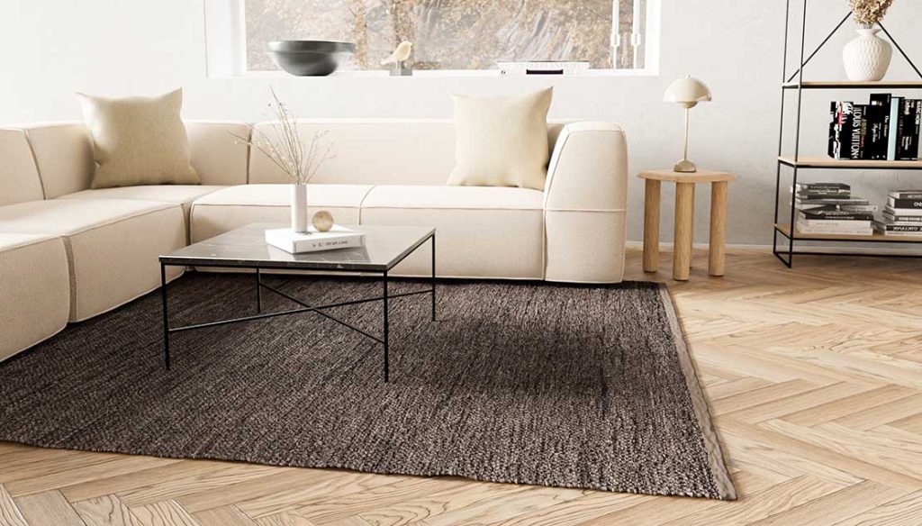 Sie erzeugen Tiefe und wirken elegant, können aber Räume kleiner erscheinen lassen. In großen Räumen können dunkle Teppiche zonierend wirken.